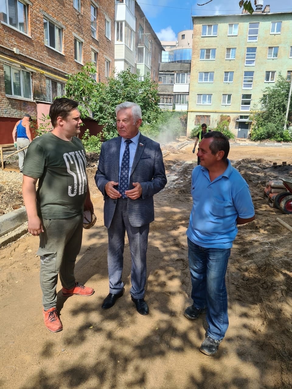 В Смоленске в этом году ремонтируют пять придомовых территорий, в том числе и большой двор по улице Ломоносова между домами 1/74 и 3. Работы здесь идут полным ходом – по словам подрядчика, они выполнены на 60%. За тем, как продвигается благоустройство, следит депутат облдумы Николай Мартынов.