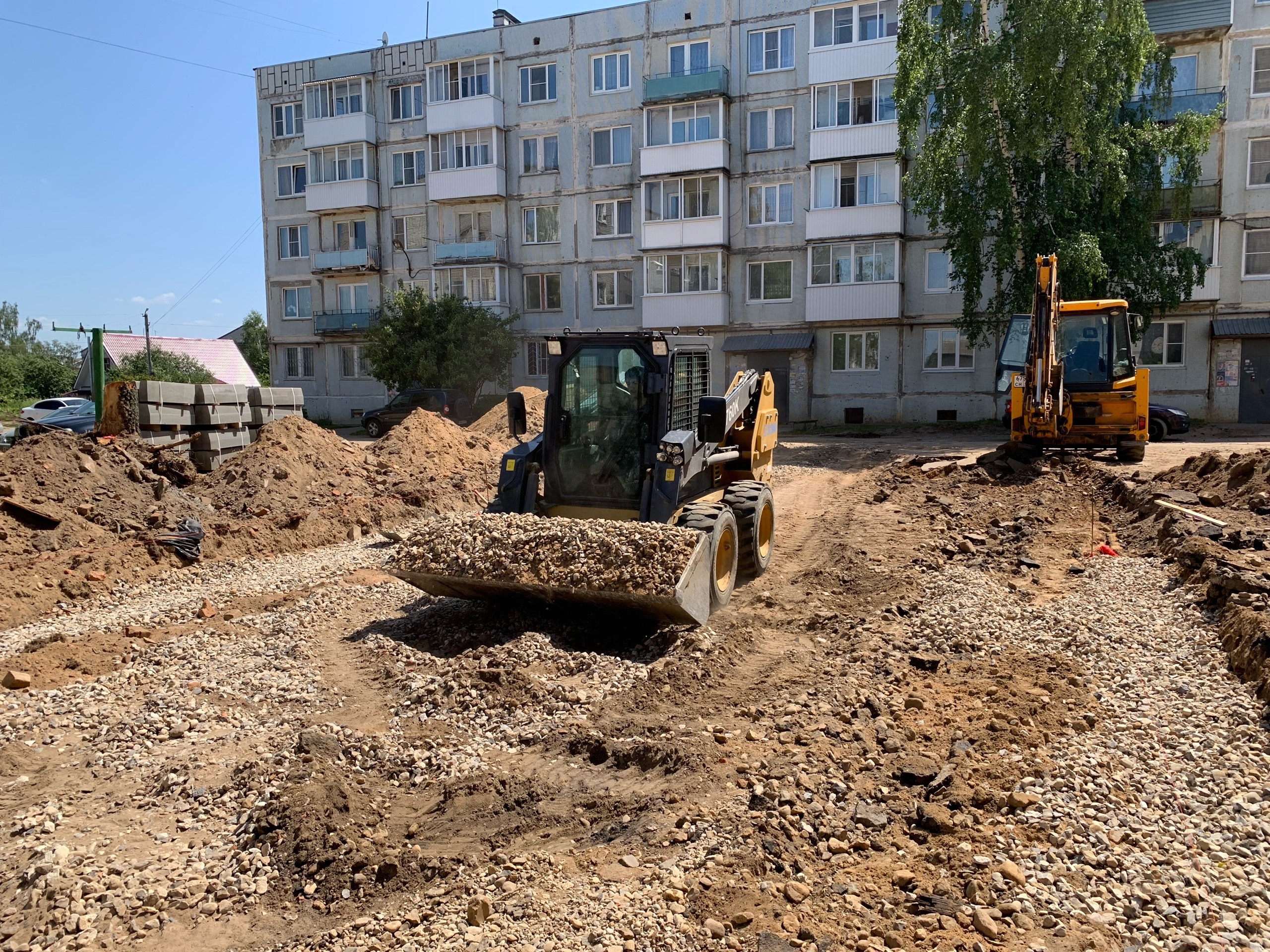 В Холм-Жирковском обустраивают рыночную площадь. В Духовщине появится «Детский городок», а также новую жизнь подарят стадиону «Дружба», работают строители и во дворах двух домов по улице Горького.