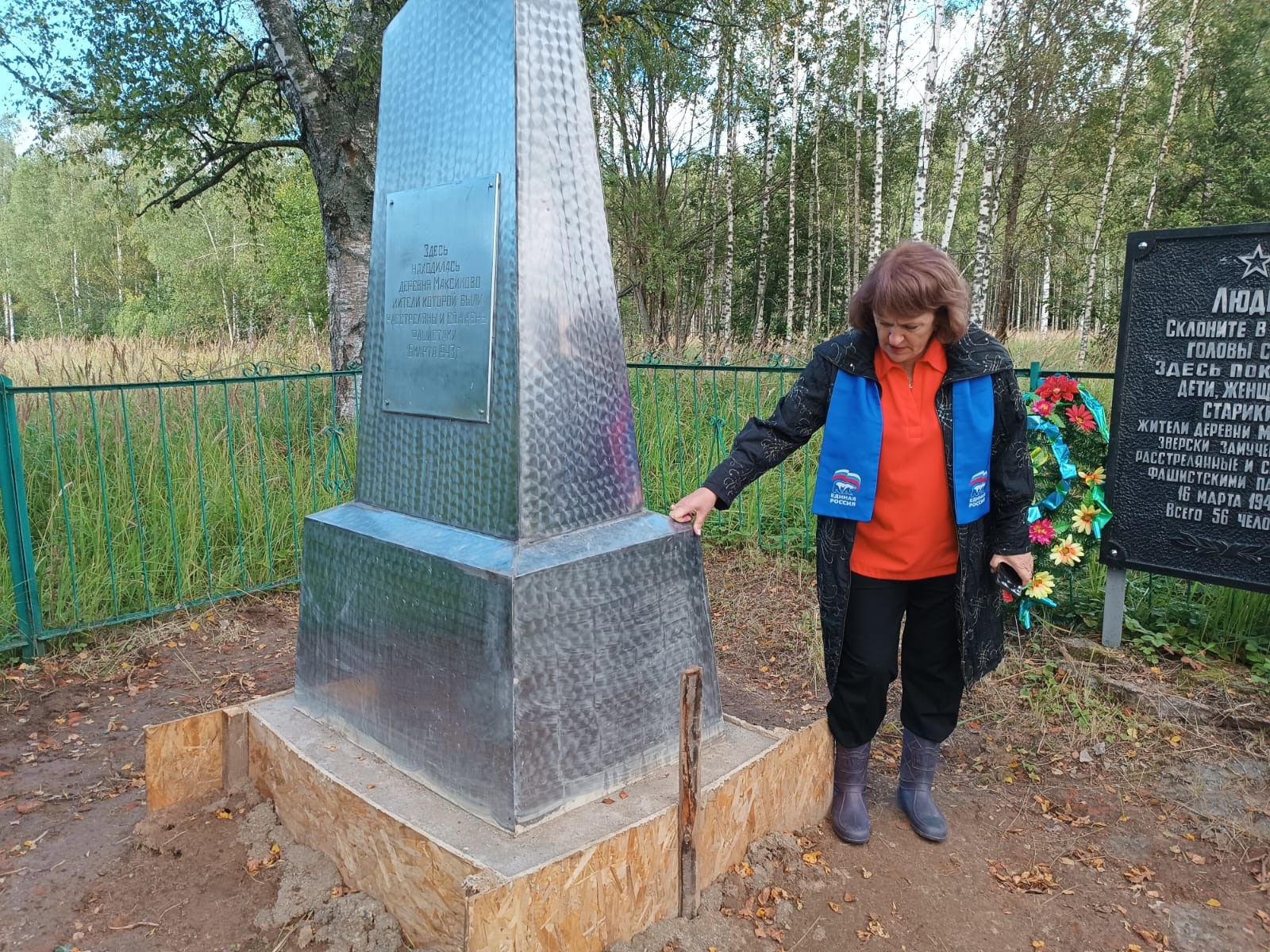 Сафоновские единороссы во главе с депутатом Смоленской облдумы Ниной Снытиной также привели в порядок памятник на месте захоронения заживо сожженных мирных жителей деревни Максимово.