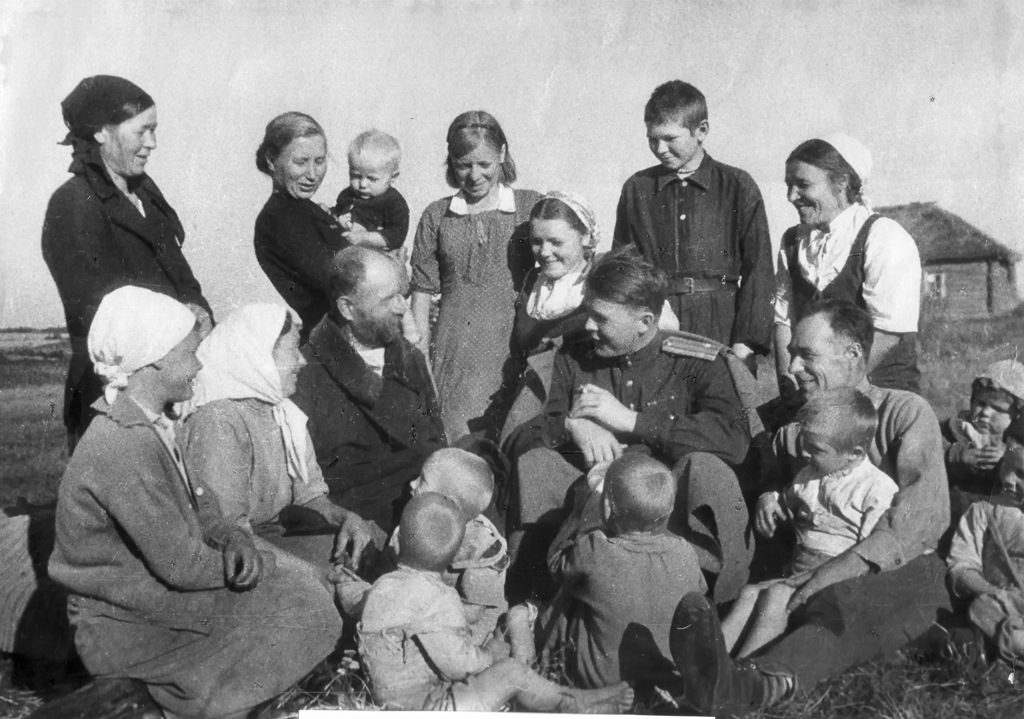 Фото: А.Т. Твардовский с земляками. Загорье, сентябрь 1943 г. Источник: Виртуальный музей «Дорогами А.Т. Твардовского»